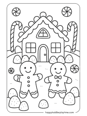 - Create a Gingerbread House Display: Cut out the houses once they’re colored and tape them to the wall or string them together as a holiday banner. Instant Christmas décor that your kids will be so proud of!