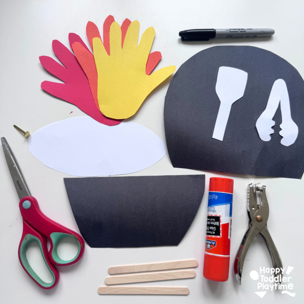 - Construction paper: black/red, red, orange, white