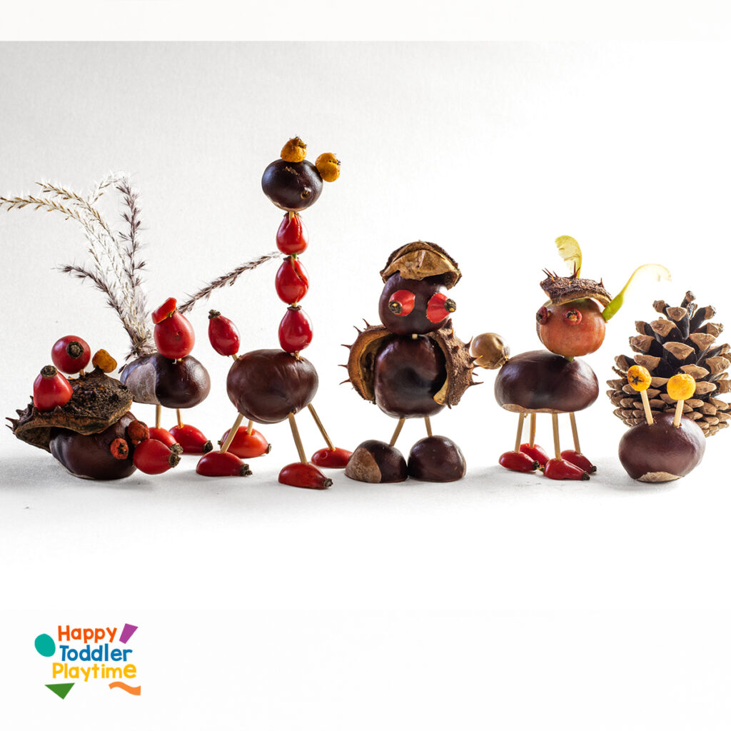- Chestnut Creatures: Use chestnuts as bodies and twigs as legs, and add berries or acorn tops for eyes and hats.