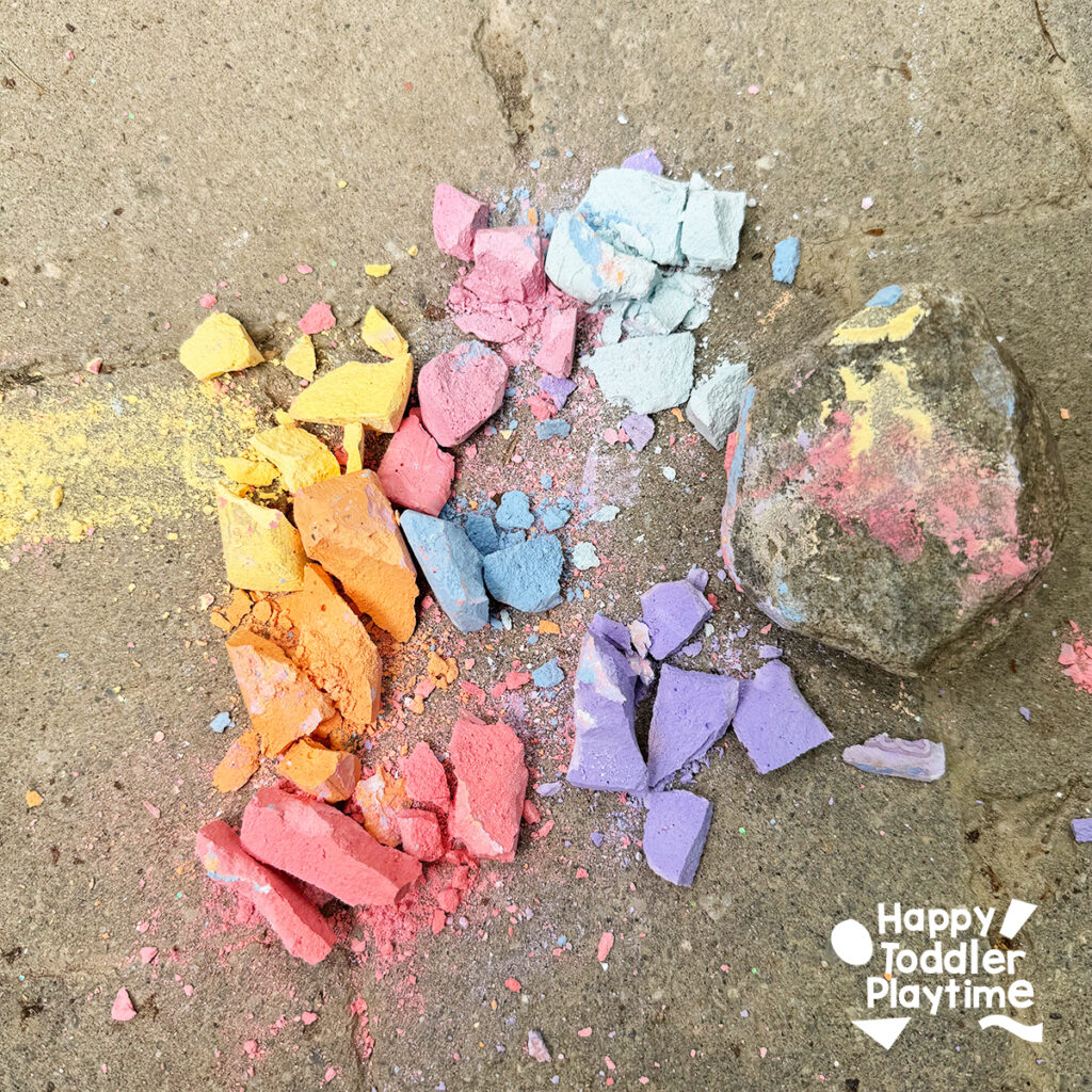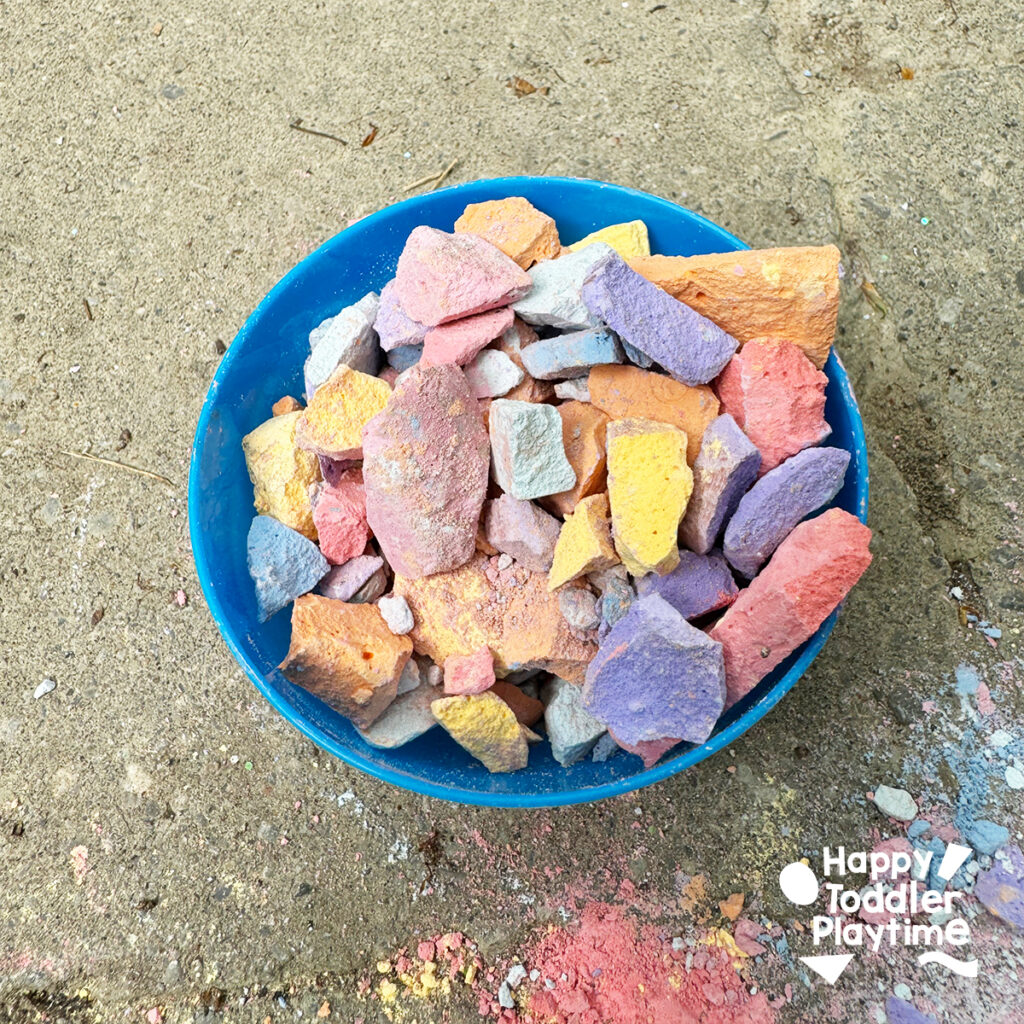 - Create the Sprinkles: Use a rock or hammer to smash sidewalk chalk into small pieces. These will be your sprinkles. Place the crushed chalk in a separate bowl for easy access.