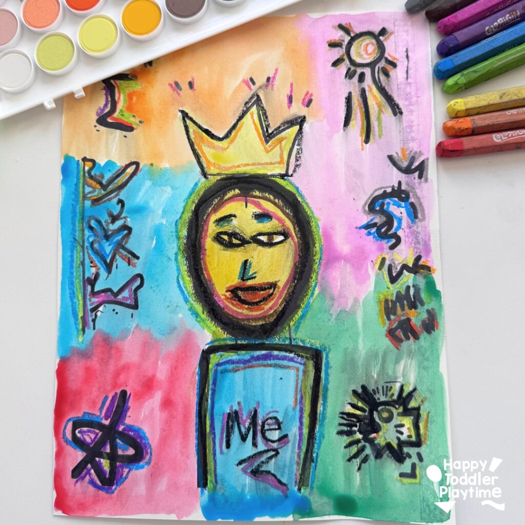 - Encourages Creativity: Your child can express themselves and create a self portrait using bold colors and energetic lines, just like Basquiat.