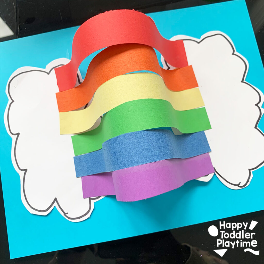 This craft combines a fluffy cloud with a colorful paper rainbow! It’s a fun way to talk about the weather and colors with kids.