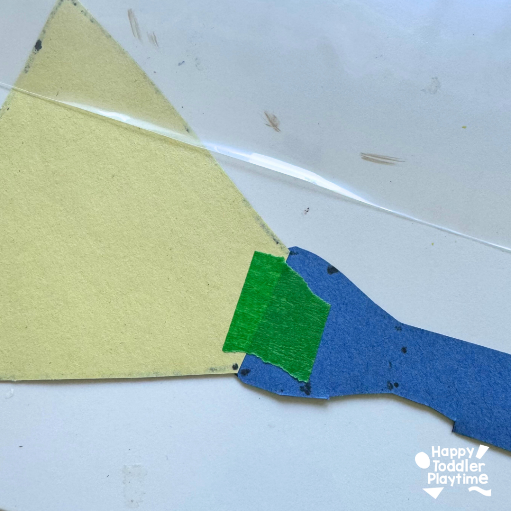 - Add the Light Beam: Cut out a triangular or cone-shaped beam of “light” from the yellow construction paper.