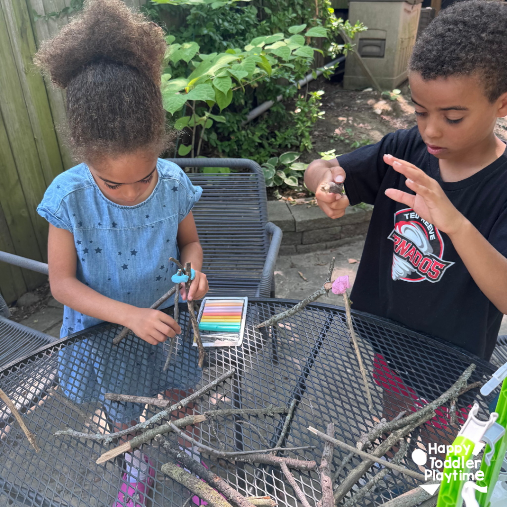 - Uses materials you already have: sticks, clay, and your imagination.