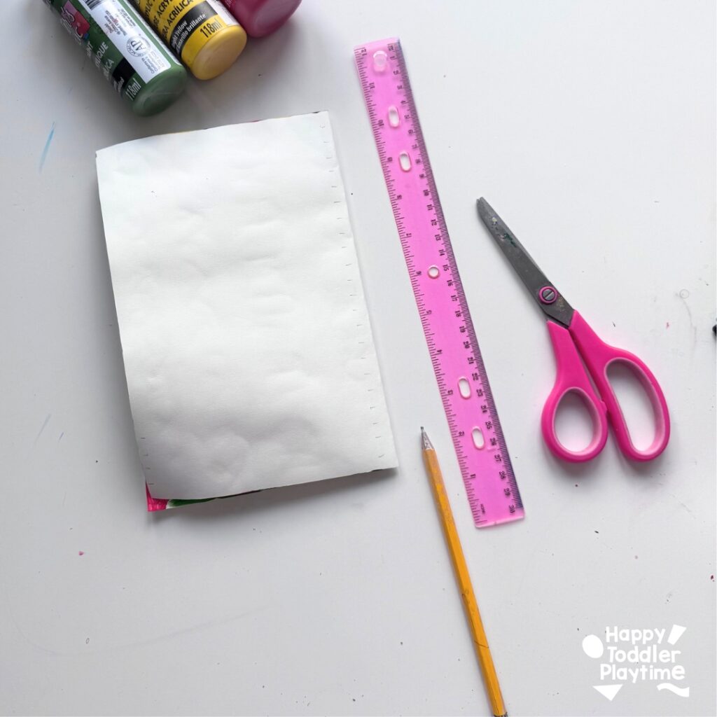 - Once your base is dry, fold it in half. On the back of the measure out your weave. For younger crafter make your weave sections larger about 1 inch. For older crafters you can make your section slightly smaller.