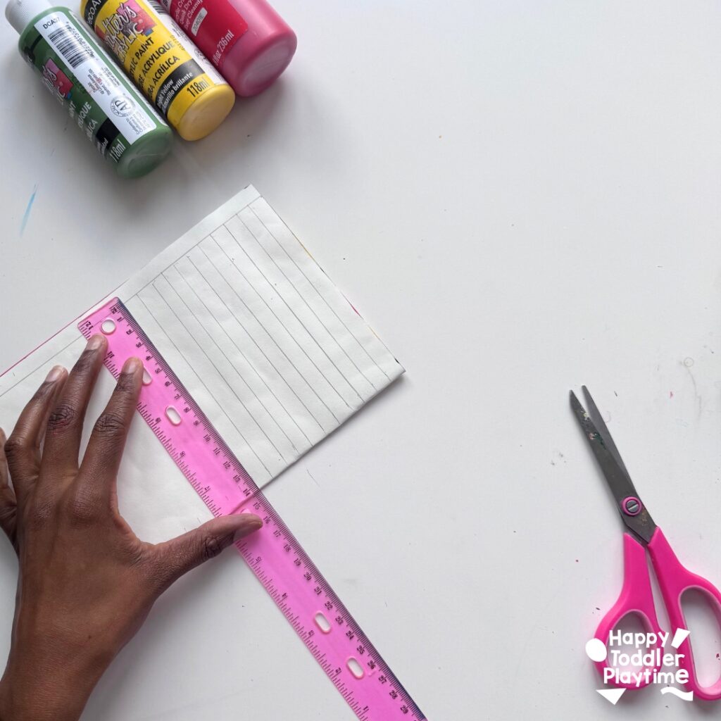 After drawing the lines, take scissors and cut along the lines.