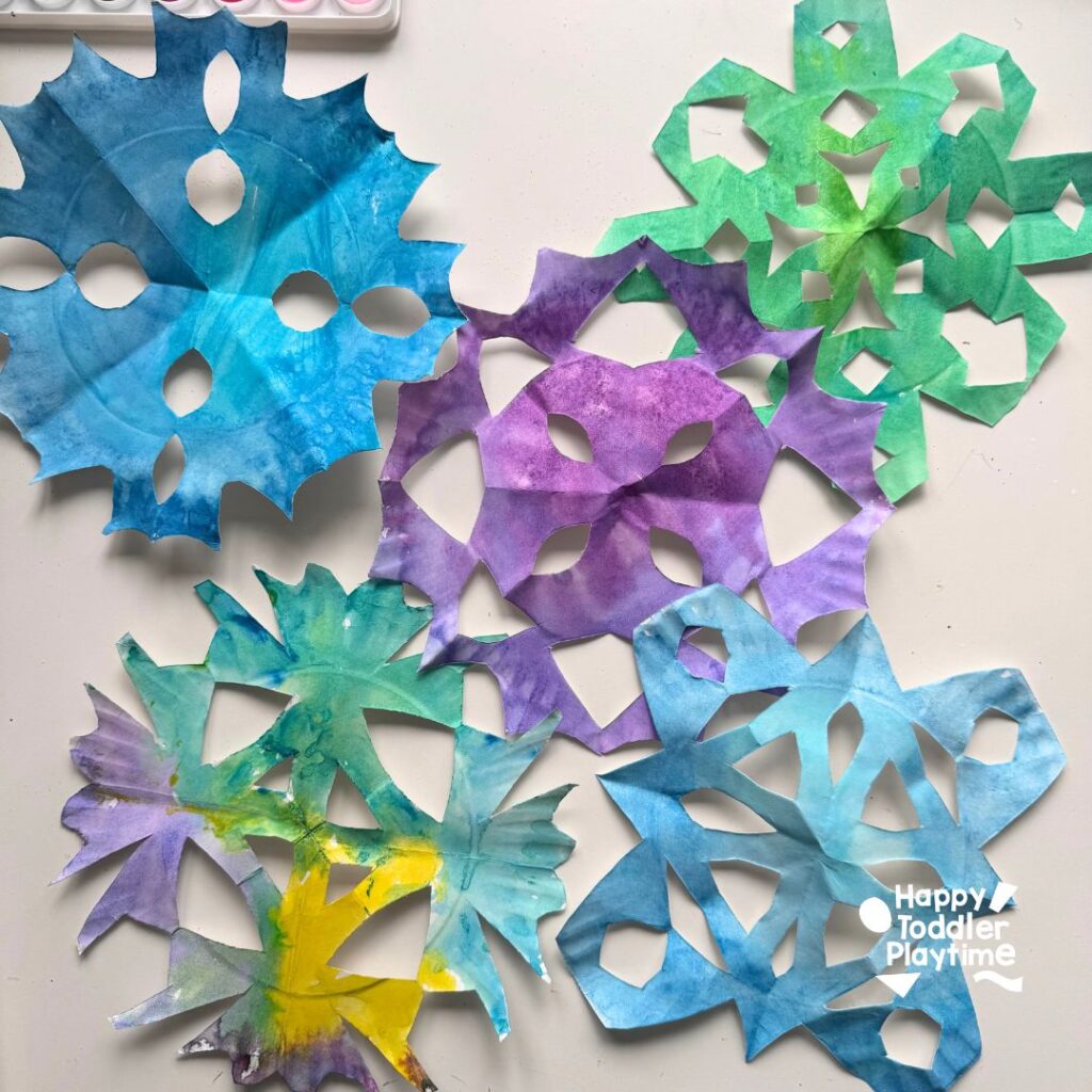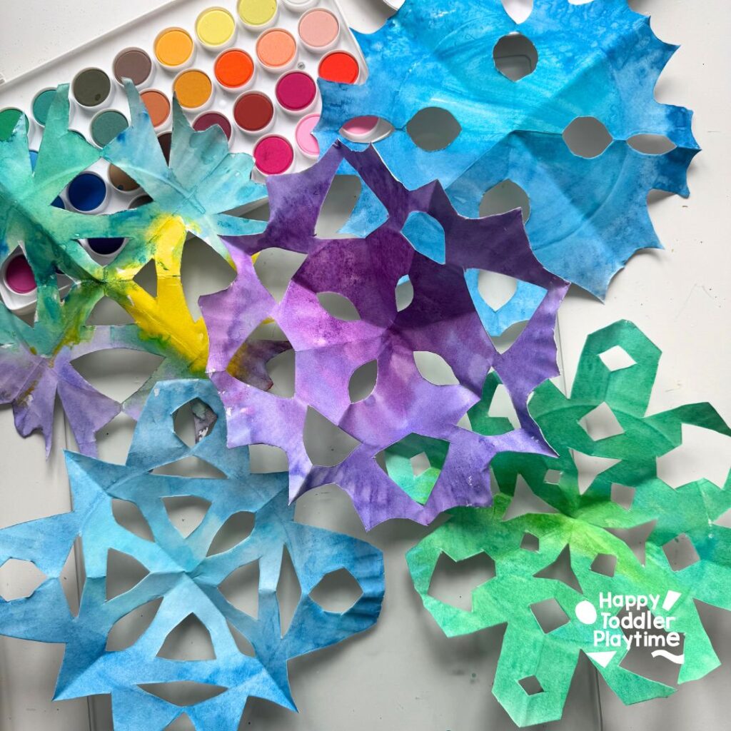 This craft is simple to set up and uses materials you probably already have at home. It’s perfect for kids of all ages, as younger children can practice cutting and painting, while older ones can experiment with intricate snowflake designs. Plus, the vibrant watercolor effect adds a beautiful touch, making these snowflakes stand out as unique works of art.