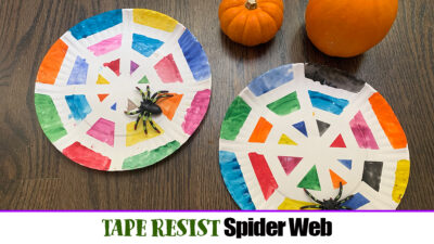Tape-resist crafts, like this spider web activity, are not just fun, they’re educational too! Kids practice fine motor skills when handling the tape and brush. They also learn about color blending, the concept of resist, and they get a rewarding surprise when they peel off the tape to reveal a design. It’s a blend of art, science, and sheer fun!