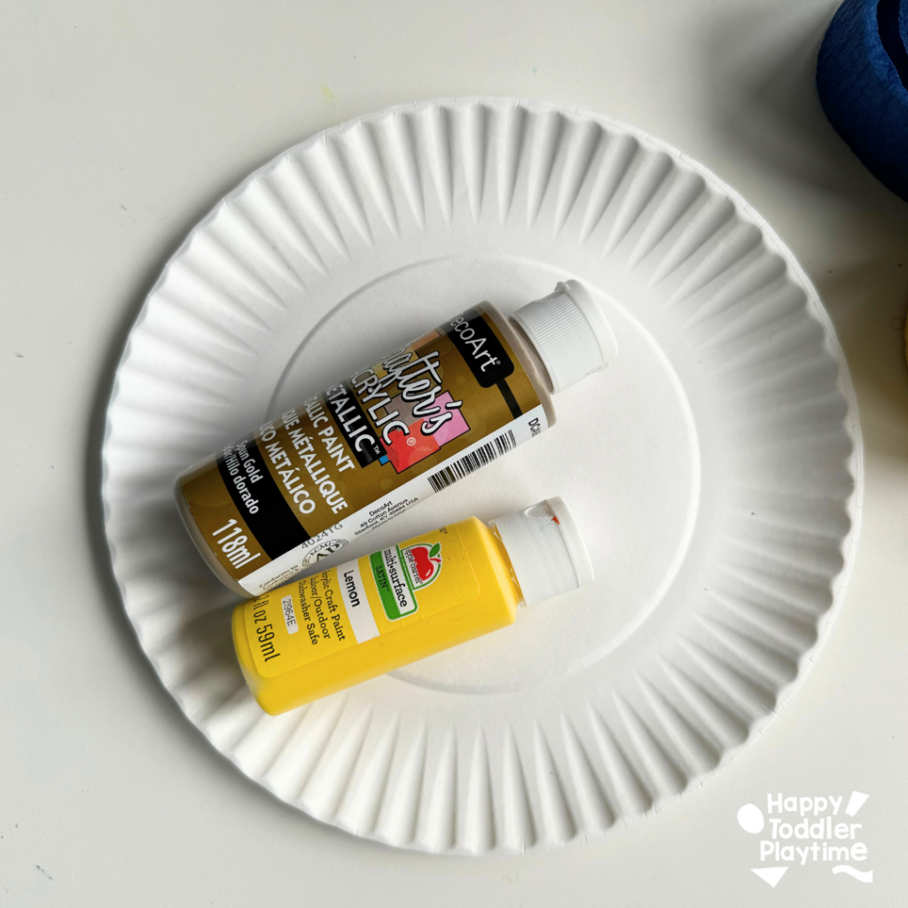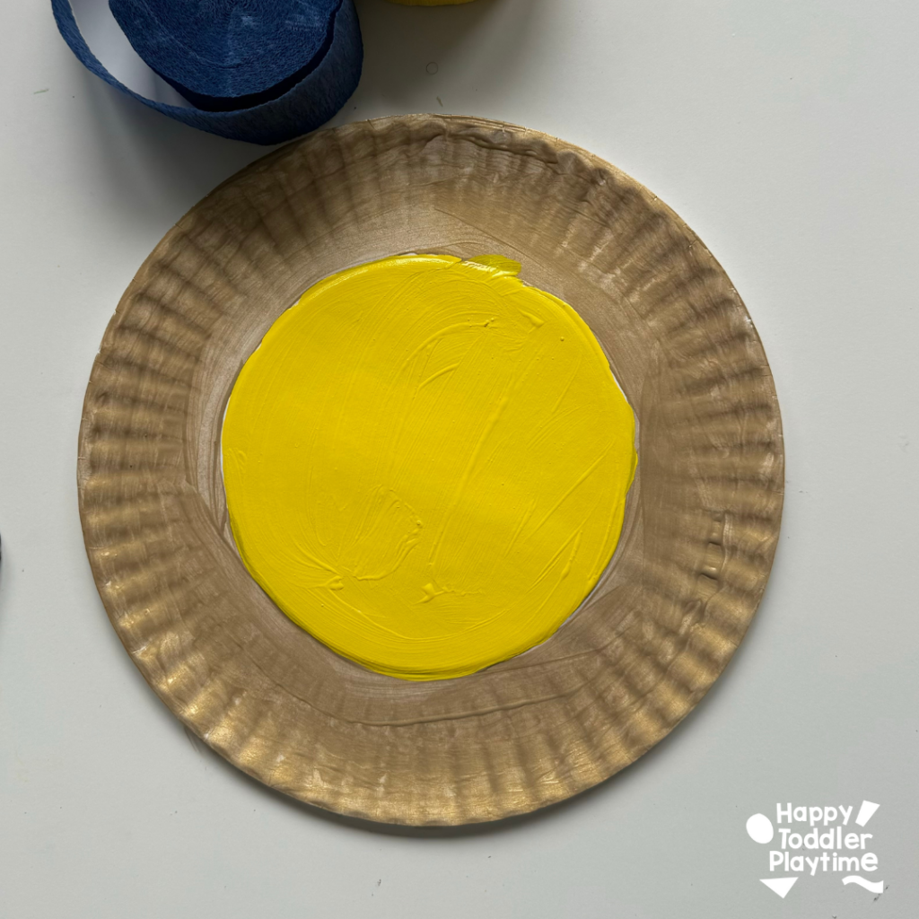 - Paint the Paper Plate: Start by painting the front of the paper plate with gold and yellow paint to create a bright, shiny base — it’s the “medal” part of your craft! Let it dry completely before moving on (or speed things up with a hairdryer if you’re feeling fancy).