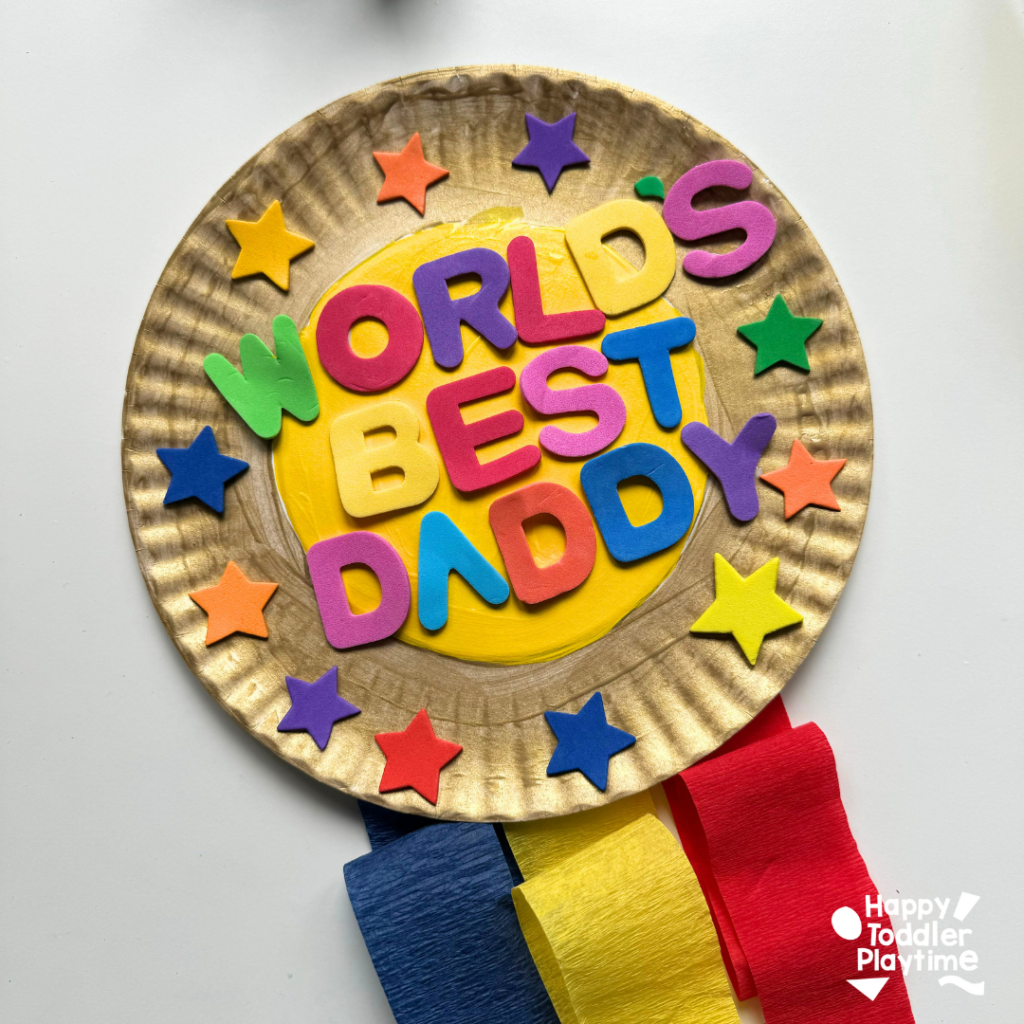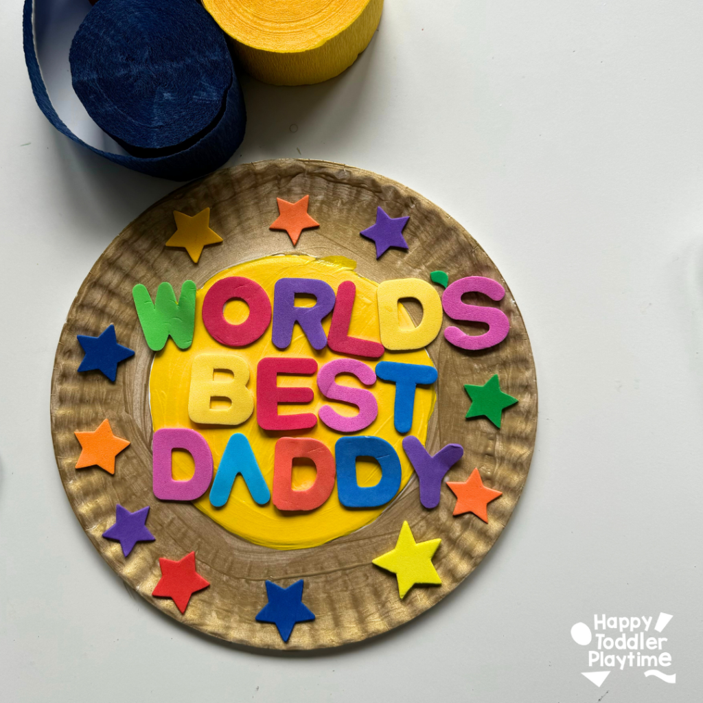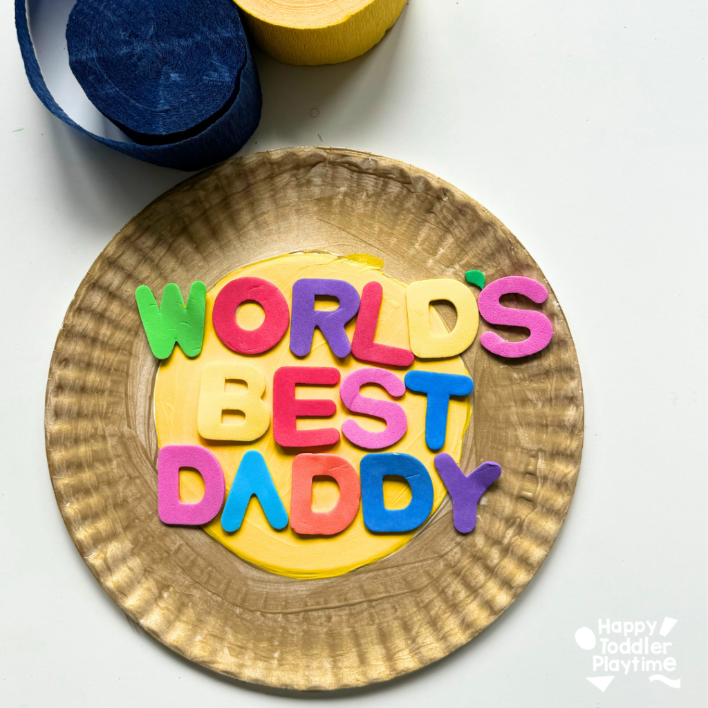 - Add “World’s Greatest Dad”: Grab your foam letters (or stickers) and spell out “World’s Best Daddy” on the front of the plate.