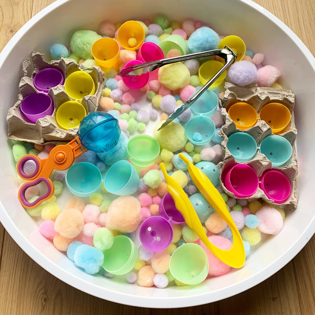 How to Make a Pom Pom Easter Sensory Bin for Toddlers and Preschoolers