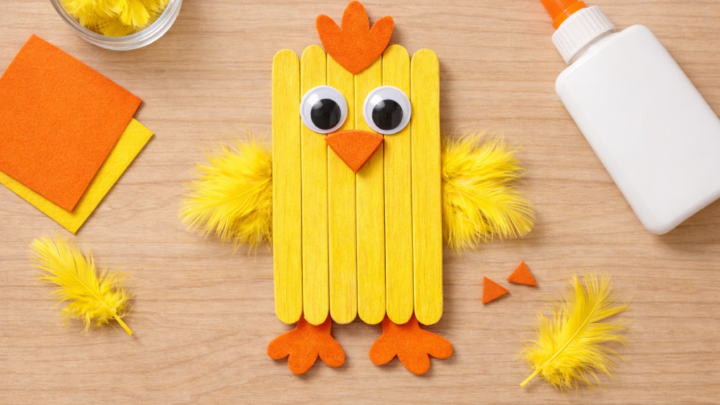 Looking for a cute and easy spring craft for kids? This popsicle stick chick craft is a simple activity that is perfect for toddlers, preschoolers, and young kids. It is bright, cheerful, and a great way to celebrate spring, baby animals, and Easter crafting fun.