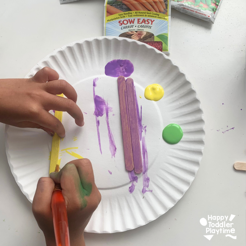 - Use your garden-safe paint to cover one or both sides of the sticks in bright, fun colors.