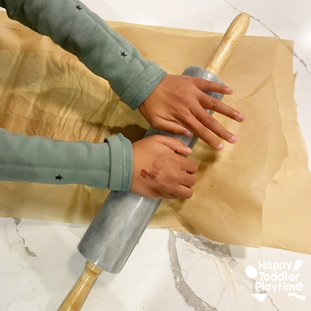 Preheat your oven to 250 degrees Fahrenheit. Roll out your dough on a surface lightly dusted with flour to prevent sticking or on top of a sheet of parchment paper. Aim for a thickness of about 1/4 inch. TIP: place a sheet of parchment paper on top while rollin to prevent sticking.