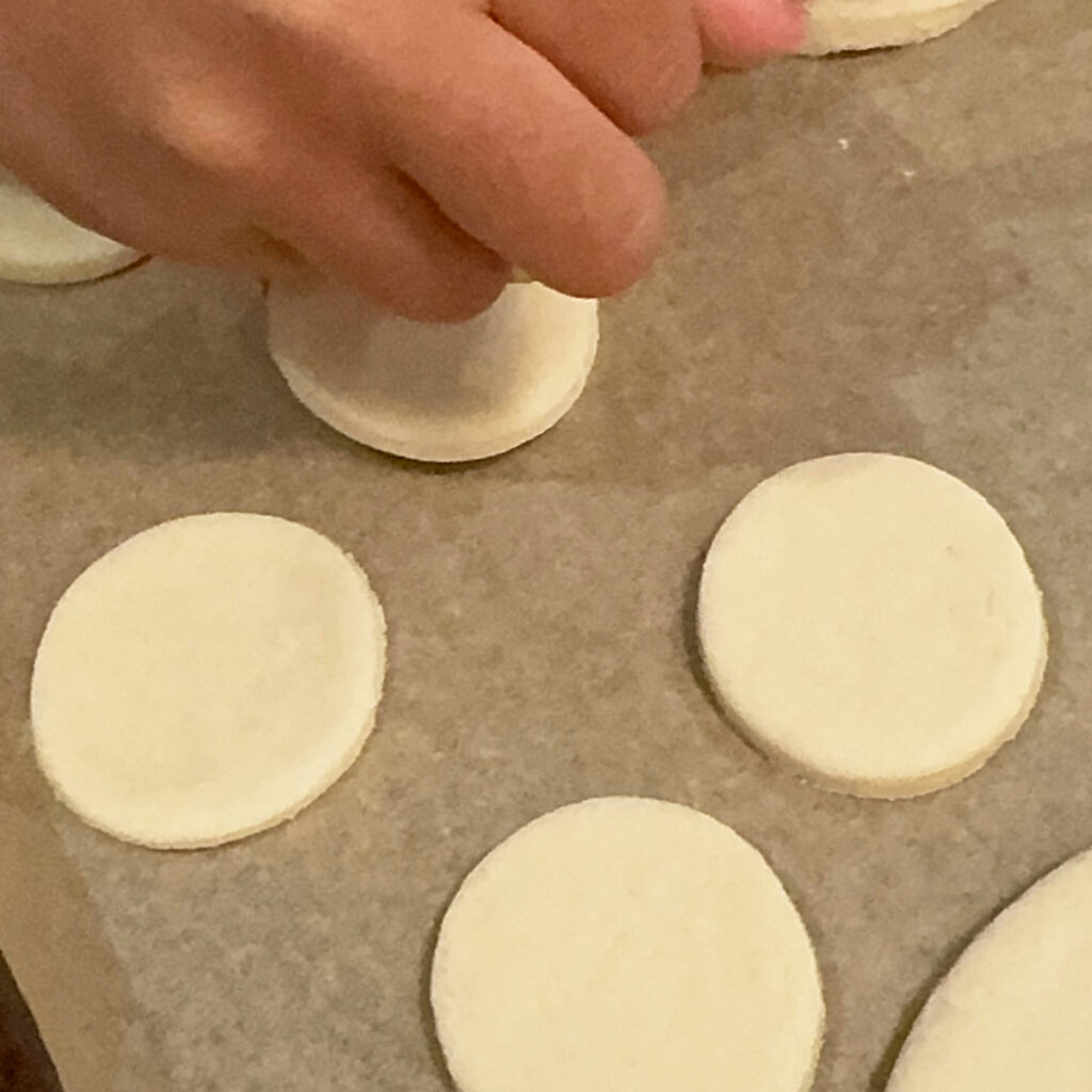 - Use the small circle cookie cutters to cut out your pendant shapes. Place these on a parchment-lined baking tray.