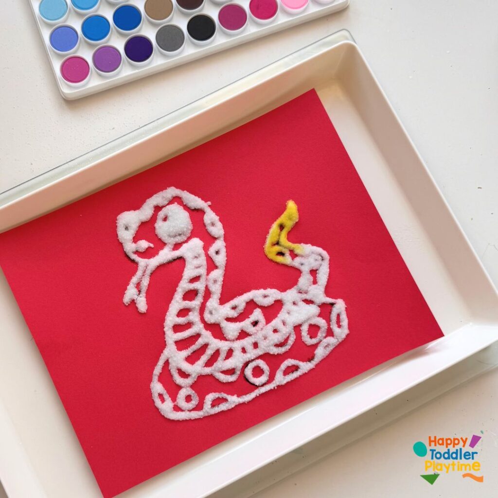 As the Chinese New Year approaches, it’s the perfect time to engage in some fun, family-friendly crafts that not only entertain but also help educate about the rich traditions of this vibrant celebration. One craft that stands out for its simplicity and stunning results is the Salt Painted Snake Craft. Ideal for ringing in the Year of the Snake—or adding a twist of creativity any time of year—this craft is easy, fun, and offers a fantastic sensory experience for kids and adults alike.
