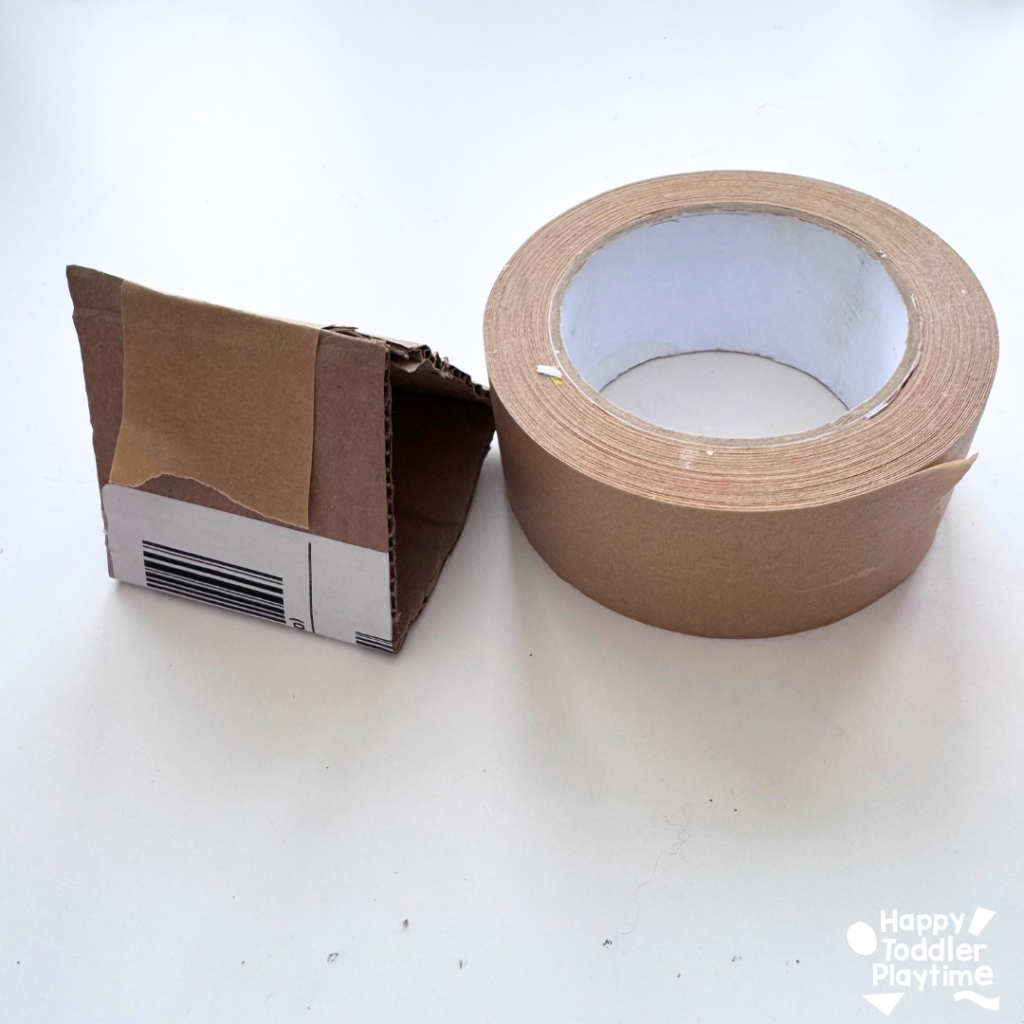 - Fold the cardboard strip into a tent and secure the top with some strong tape. This will make the base for your cardboard stamp.
