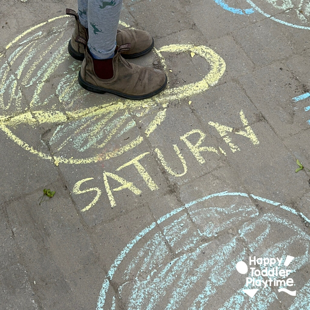 One afternoon when it was too cold to go swimming we headed out the cul-de-sac and basically drew the galaxy and we spent the next few hours exploring space.