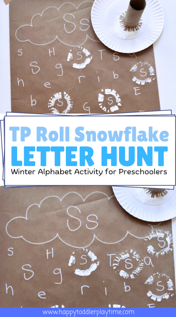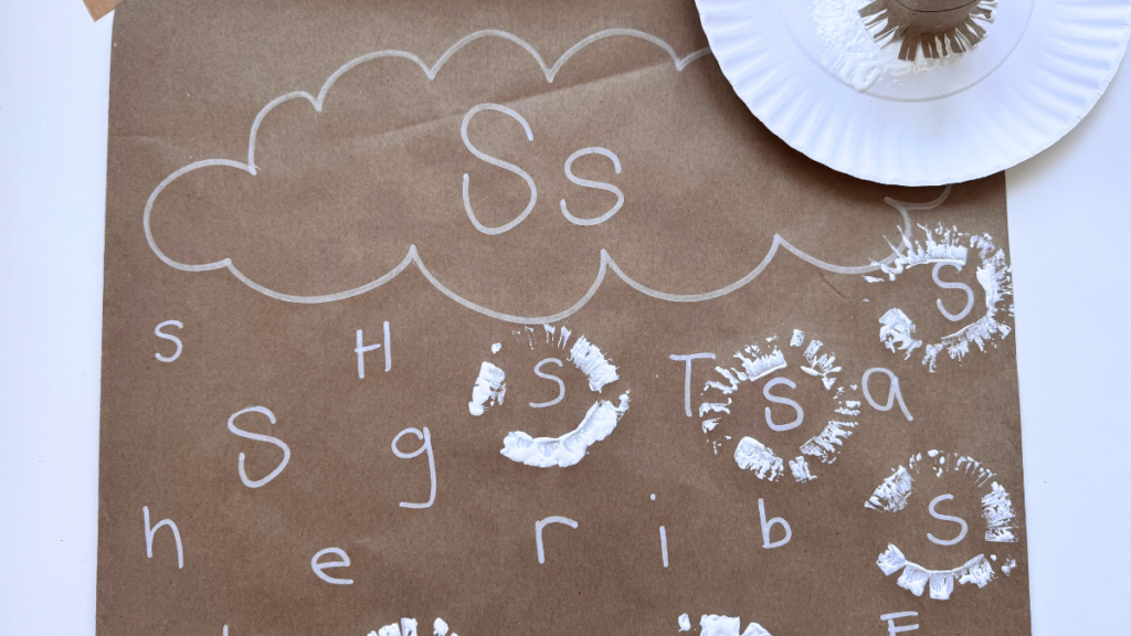 What I love about this activity is how naturally it combines movement, visual scanning, and art. Kids aren’t being asked to “find the letter S.” They’re hunting for snowflakes, stamping paint, and accidentally learning along the way. The repetition feels fun instead of forced, and the whole thing turns into a big, collaborative winter scene.