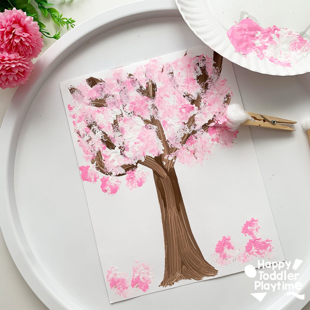 Celebrate cherry blossom season with this delicate cotton ball craft. Easy for toddlers and a beautiful way to discuss springtime changes.