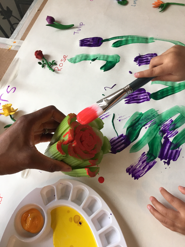 Collect sticks, rocks, flowers, or leaves and let kids use them in their art. Try flower printing, leaf rubbing, or using petals to “paint” across a page.