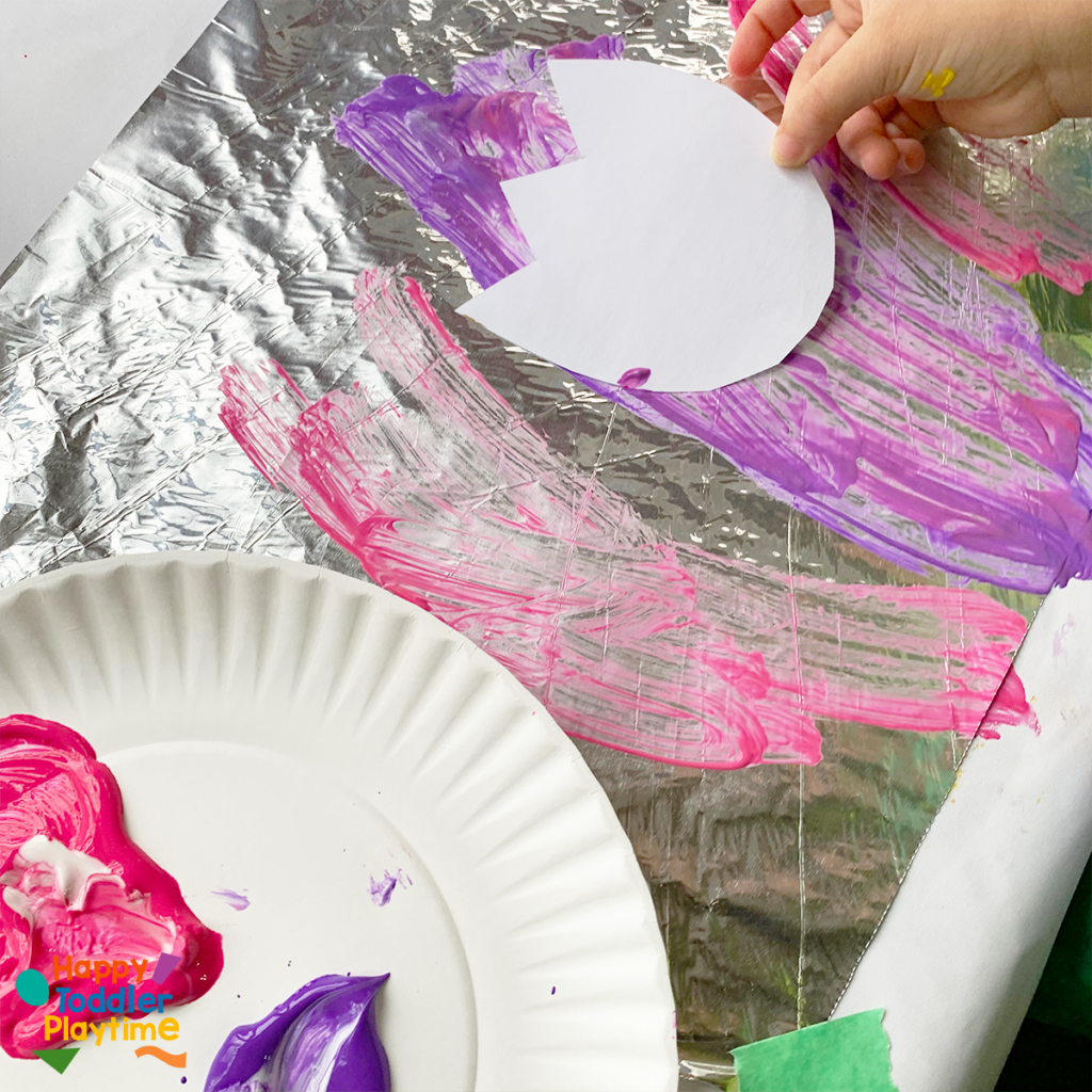 Paint some foil and press paper to it—suddenly you’ve got a textured tulip garden! This technique is great for little hands and creates such a fun visual result.