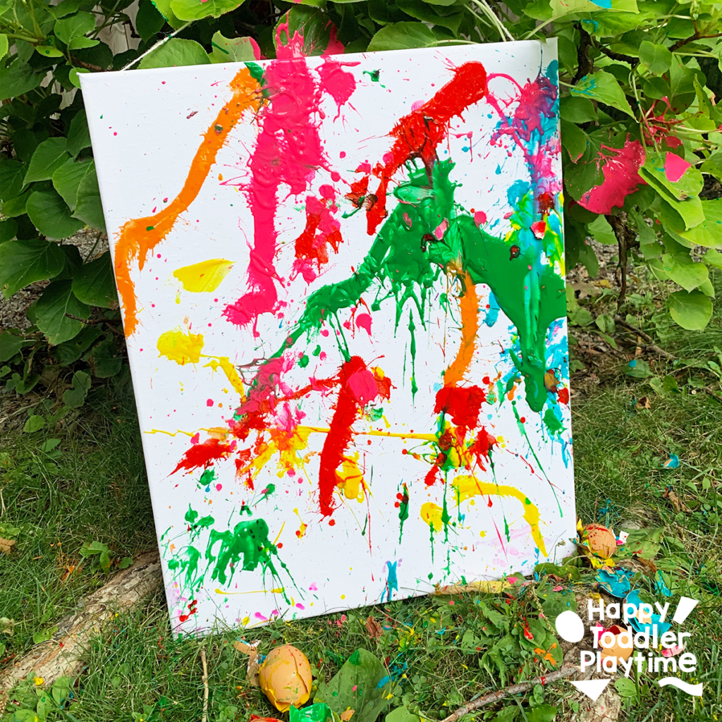 Save those dyed Easter eggshells! Fill them with paint and let your child drop or throw them onto paper for an exciting spring splatter painting session. It’s creative chaos—in the best way.