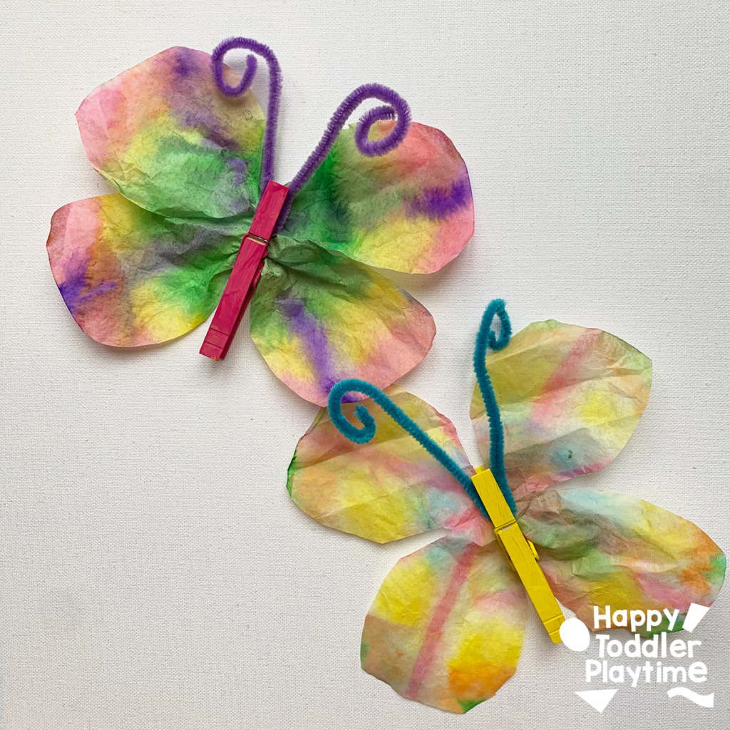 Watercolor-painted coffee filters transform into colorful butterfly wings with just a pinch in the middle and a clothespin. This one is all about watching the colors blend and bloom.