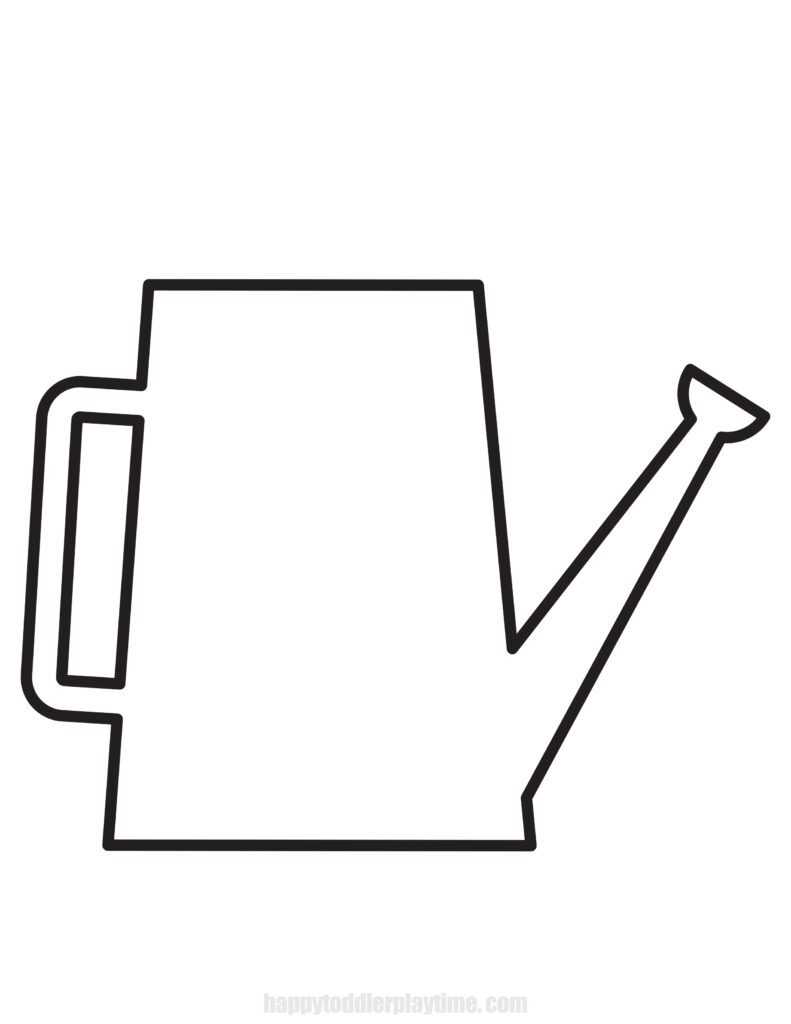 - Cut Out the Watering Can Flower Pot: Print and cut out the watering can flower pot template (find it at the end of this post) and trace it on a sheet of construction paper to cut out. Or on a sheet of construction paper, draw the three parts of a watering can: the pot, the handle, and the spout. Invite your child to help cut these pieces out.