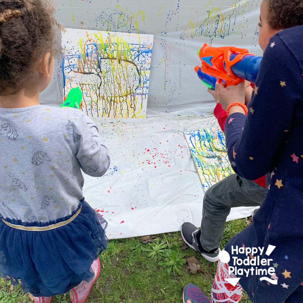 Looking for a fun and colorful outdoor activity to do with your kids? Look no further than splatter painting!