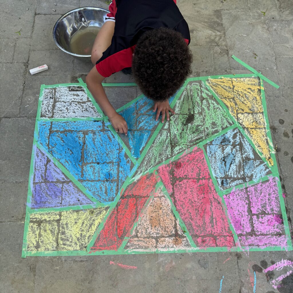 Grab some painter’s tape and sidewalk chalk to create this stunning outdoor art project.