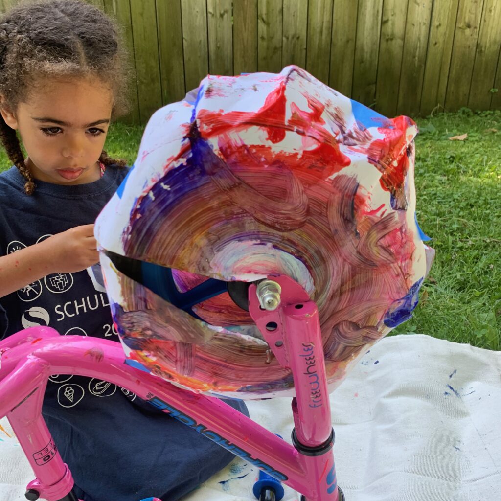 Use your bicycle while as a moving canvas in this fun outdoor painting activity.