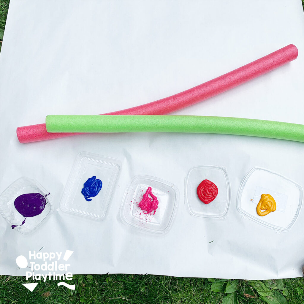 Today, we’re excited to explore a unique and playful painting technique using the ends of large pool noodles. Get ready to make a splash of vibrant masterpieces on a large sheet of paper!
