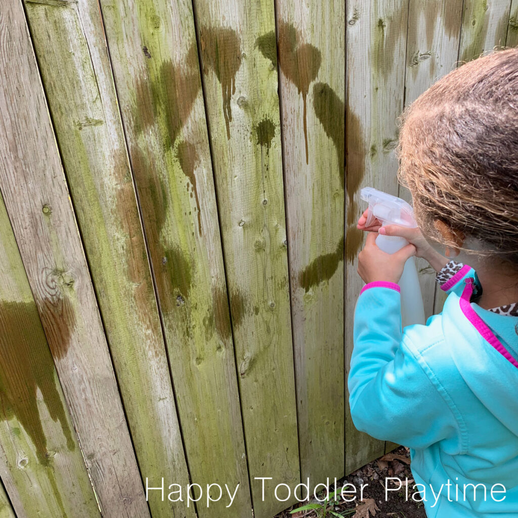 Spray Bottle Water Painting is a fun and super easy outdoor activity for kids! It is super easy to set up and clean up and a great way to get creative outside without the mess!