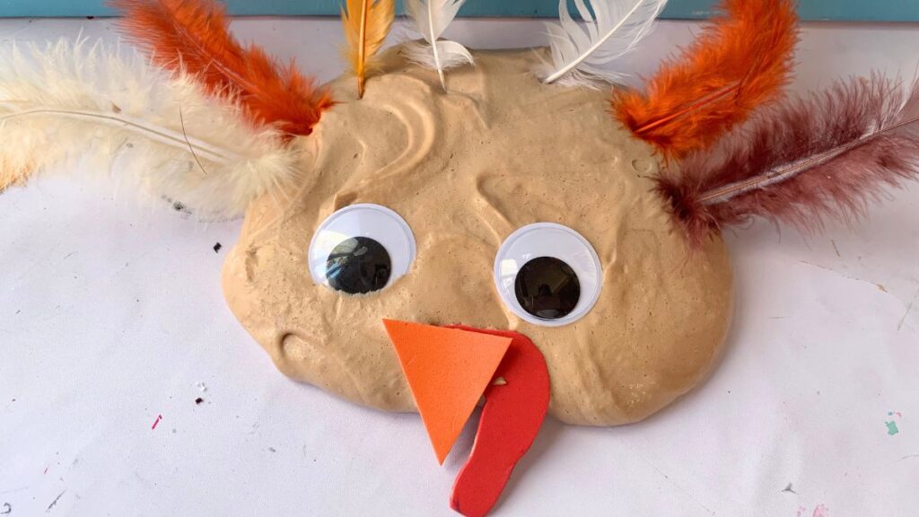 If you’re looking for a fun and hands-on activity to get kids excited for Thanksgiving, Fluffy Turkey Slime is the perfect craft! This slime is super easy to make and comes together super fast. Combining sensory play with a festive twist, this slime activity lets kids create their own gooey, stretchy “turkey” complete with feathers, googly eyes, and a beak. Slime-making is always a big hit with kids, and turning it into a turkey gives them an exciting opportunity to get creative while learning about texture, color mixing, and even a bit of science along the way.
