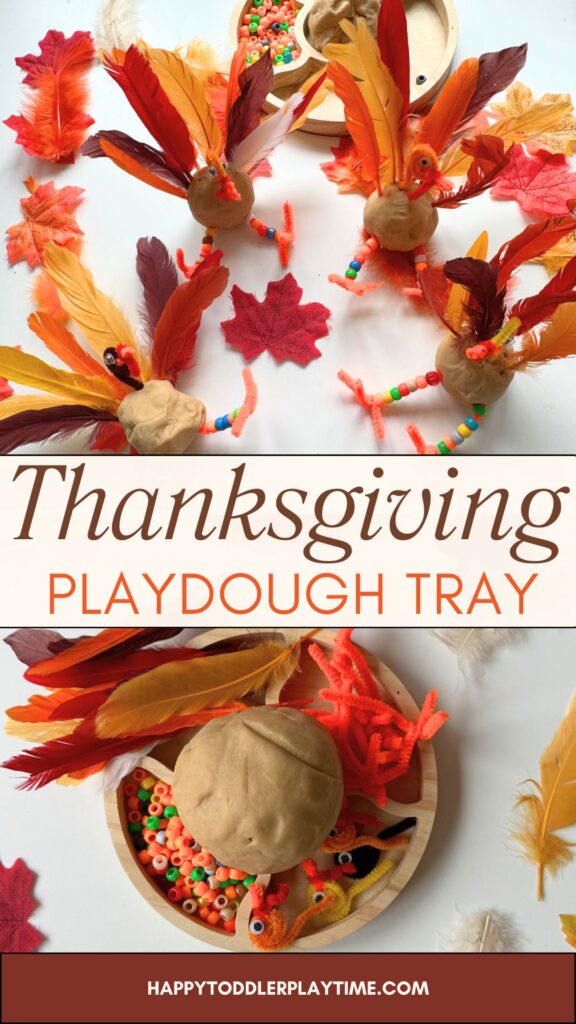 One of the best parts about this turkey playdough tray is how adaptable it is. Kids can choose their favorite colors, arrange the feathers, and add silly details to make each turkey unique. This activity is simple to set up, fun to explore, and a great way to bring a festive Thanksgiving vibe to playtime. Plus, it’s a wonderful opportunity for fine motor skill practice and creativity.