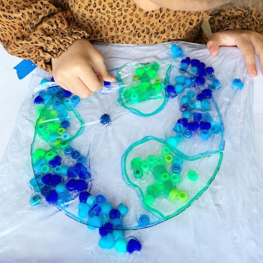 Earth Day Sticky Wall is a super fun and creative art activity for toddlers or preschoolers. Create and decorate your very own Earth for Earth Day!