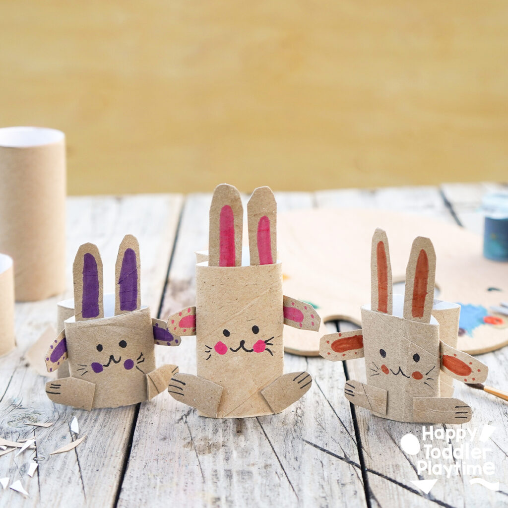 - Prepare the Roll: Begin by folding the toilet paper roll flat, then gently open it and fold the two edges inward, creating a 'w' edge on each side of the roll.Size Options: Decide if you want to make two small bunnies or one large one. For two, cut the toilet paper roll in half.Create Bunny Features: Use another toilet paper roll to cut out two ears, two arms, and two legs. Shape them accordingly.Decorate: Draw paws on the arms and legs using the pen or markers. Then, draw a face on the front of the bunny and color in the ears.Assemble the Bunny: Glue the ears to the inside top of the bunny head. Attach the arms on either side within the folds you created and glue the feet at the bottom.