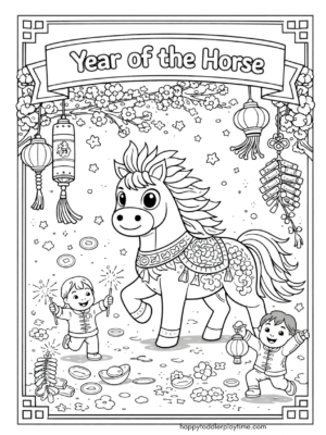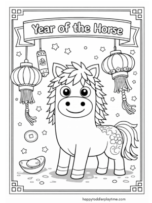 Horses are often linked with energy, confidence, independence, and kindness, which opens up some great conversations with kids in an age-appropriate way. These free printable Year of the Horse coloring pages are designed to be flexible—simple enough for younger kids, but still interesting for preschoolers and early elementary kids who like adding details.